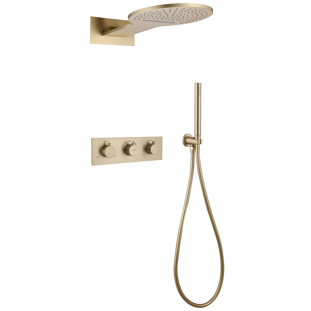 ABBER Душевая система Wasser Kreis AF8151G скрытого монтажа без излива, термостат, золото матовое