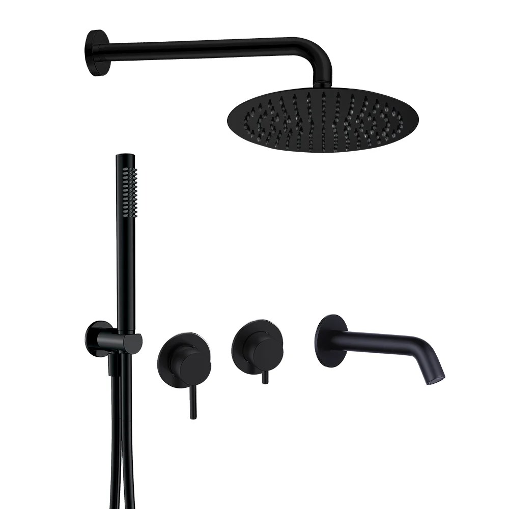 AQUAme AQM8408MB Набор для комплектации ванны с изливом, верхним и ручным душем, матовый черный