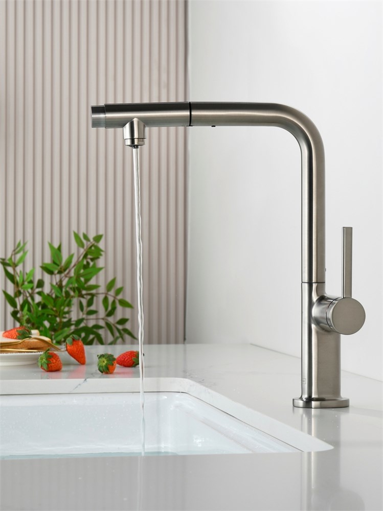 AQUAme AQM9903BN Cucina Смеситель для кухни с выдвижным L-образным изливом, с подключением к фильтру с питьевой водой, никель шлифованный