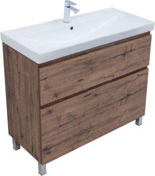 AQUANET Тумба с раковиной Алвита new 100 (Flash) напольная 2 ящ. цв.дуб веллингтон табак