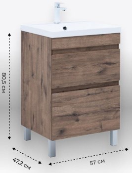 AQUANET Тумба с раковиной Нота New 60 напольная, дуб веллингтон табак
