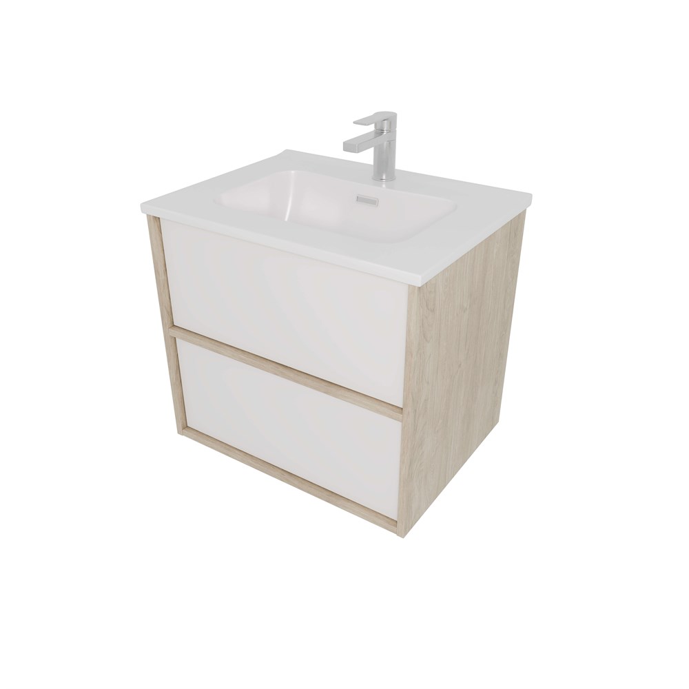 AQUATEK Комплект мебели: Тумба ЛИБРА с раковиной 60см, 2 ящика с системой push-to-open, корпус дерево,цвет фасадов белый мат