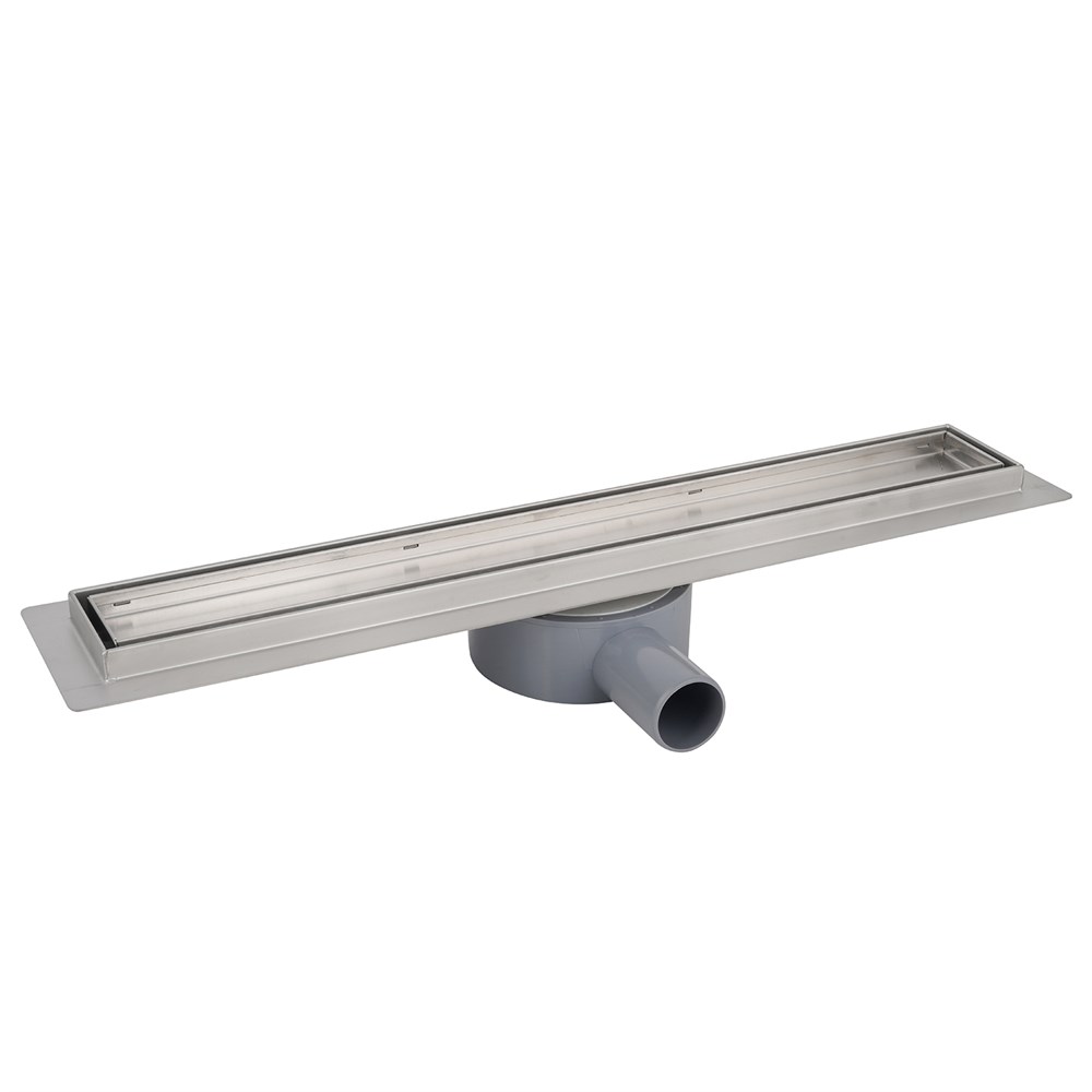 Душевой желоб AZARIO 550 мм "под плитку" сухой/мокрый гидрозатвор с горизонтальным выходом D40 (переходник D50), поворотным сифоном из ABS пластика и решеткой - идеальное решение для эффективного сбора, и отведения жидкости в канализацию с поверхности пола. Они предназначены для монтажа в ванных комнатах, душевых, санузлах квартир, загородных домов и общественных местах.
