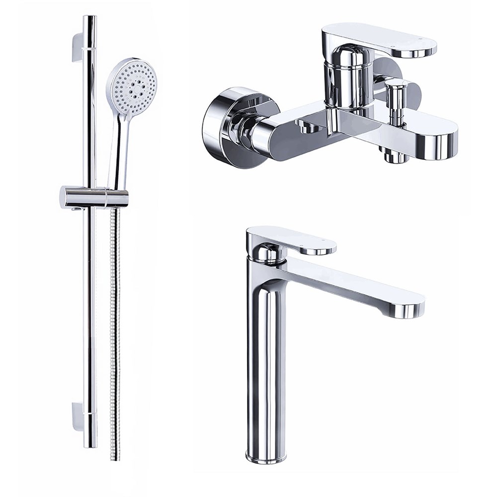 AZARIO Набор смесителей 3 в 1 для ванны VIANO, хром (AZ-15830501+AZ-15834551+AZ-15782010)