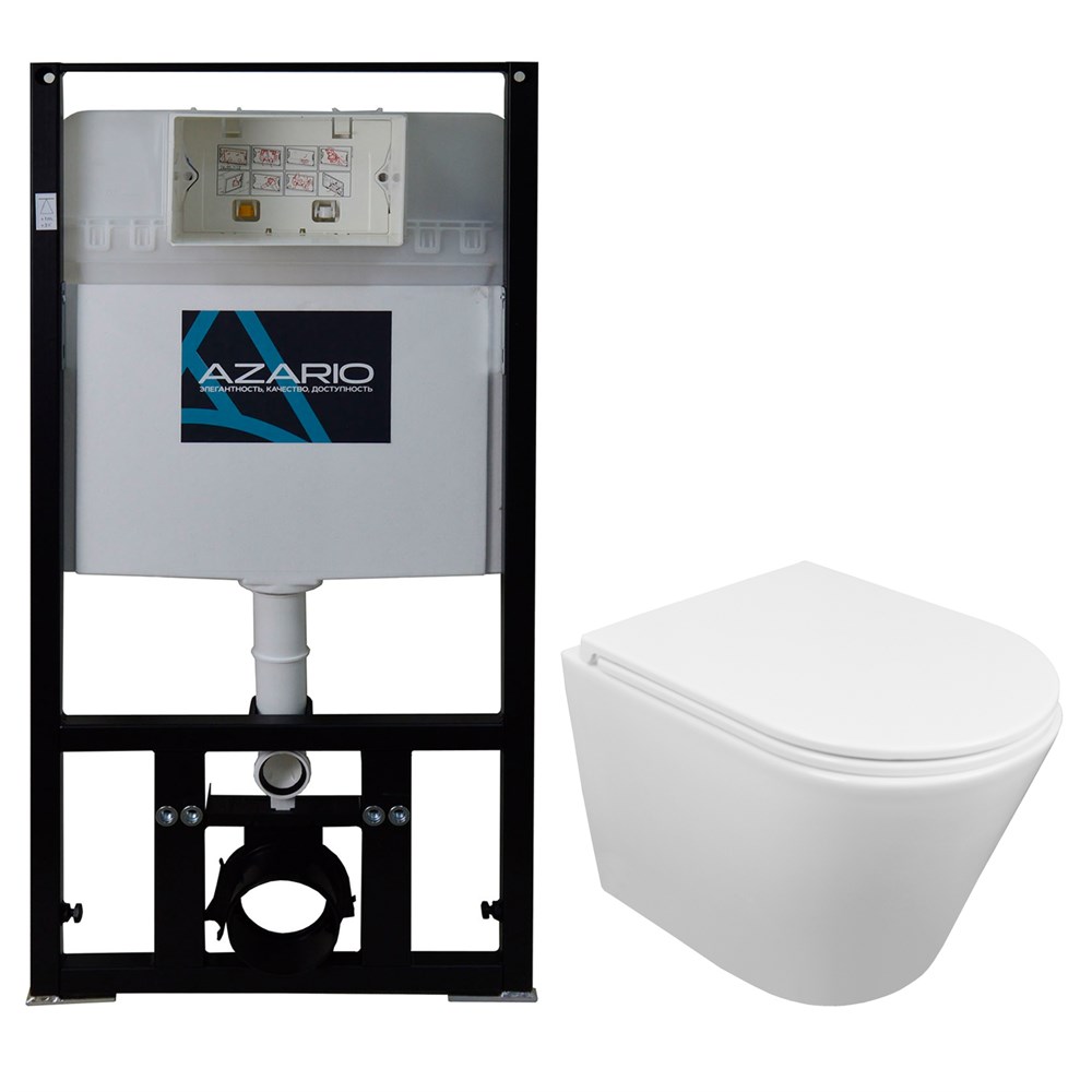 AZARIO Сет: Инсталляция для подвесного унитаза 3/6л. + унитаз Teramo безободковый, слив "Скрытое Торнадо", с сиденьем микролифт (AZ-8010-1000+AZ-0053-UQ3)