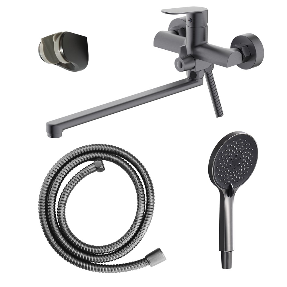 AZARIO Смеситель для ванны Alanti керамический картридж, длинный излив, с ручным душем, шланг 150 см, графит (AZ-K1732GR)
