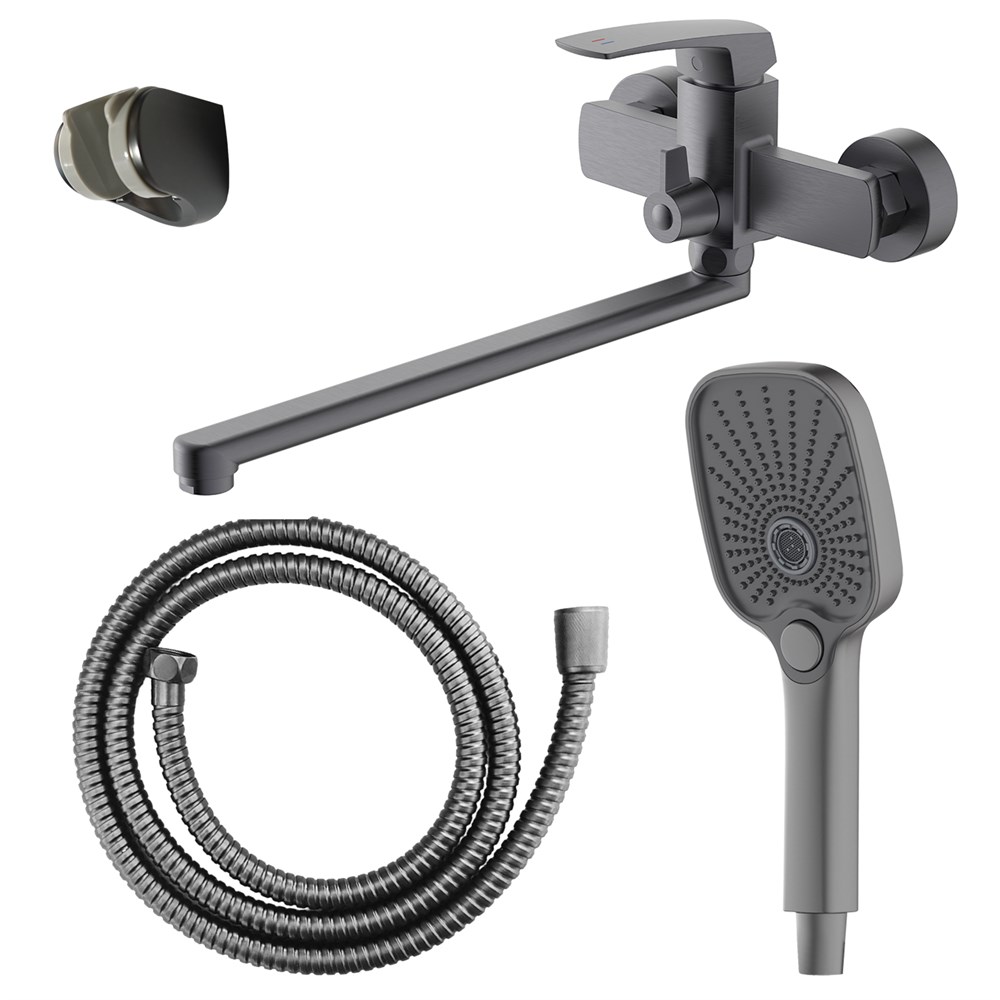 AZARIO Смеситель для ванны Conda керамический картридж, длинный излив, с ручным душем, шланг 150 см, графит (AZ-K1711GR)