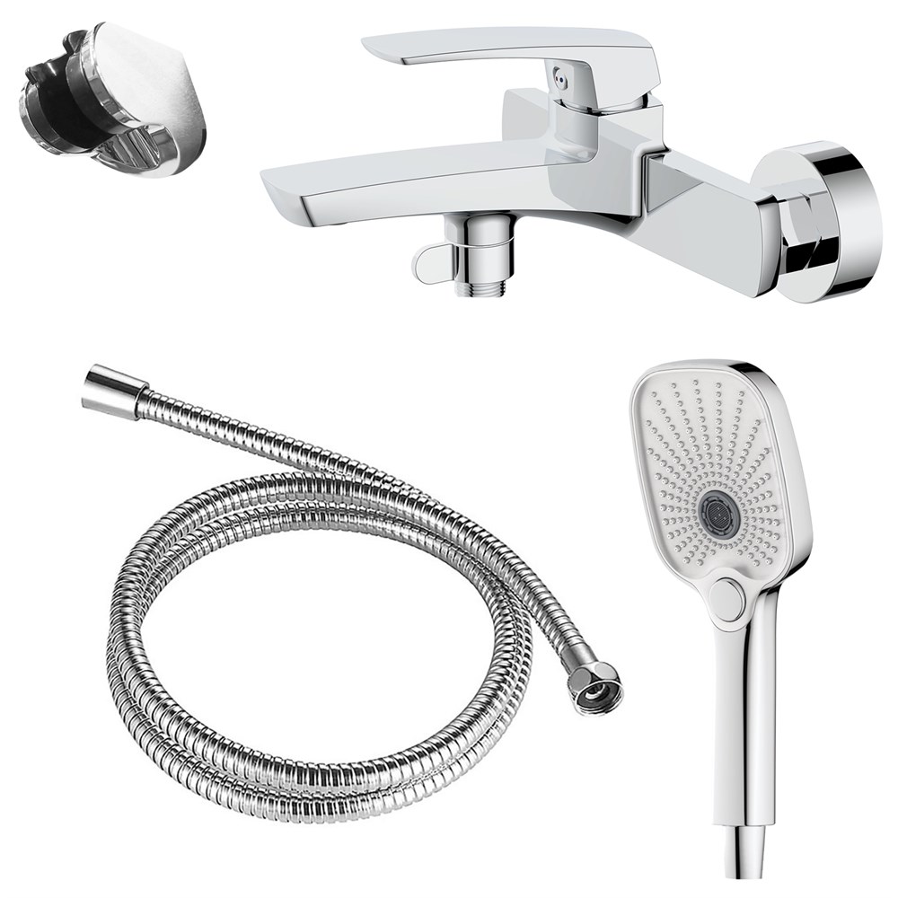 AZARIO Смеситель для ванны Conda с ручным душем, керамический картридж, шланг 150 см, хром (AZ-K3011)