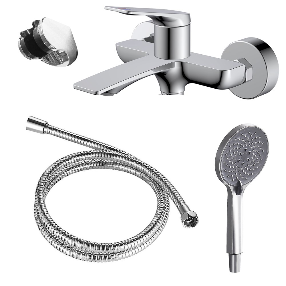 AZARIO Смеситель для ванны Lursy с ручным душем, керамический картридж, шланг 150 см, хром (AZ-K3049)