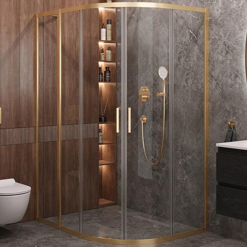 CEZARES Molveno Душевой уголок асимметричный размер 120x100 см двери раздвижные профиль - брашированное золото / стекло - прозрачное
