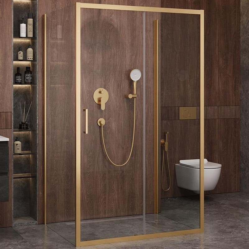 CEZARES Molveno Душевой уголок прямоугольный размер 120x90 см двери раздвижные профиль - брашированное золото / стекло - прозрачное