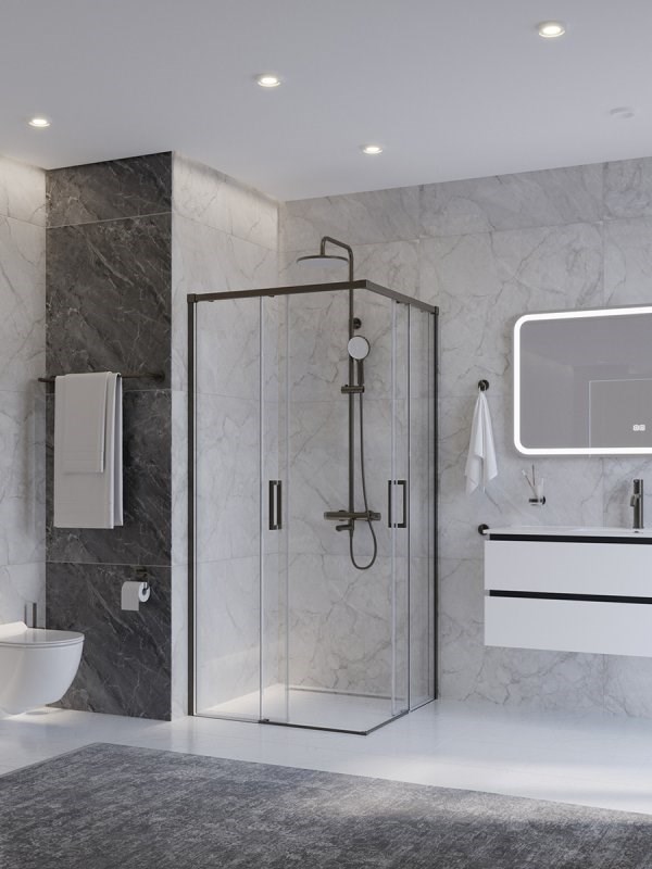 CEZARES Plane Душевой уголок квадратный двери раздвижные размер 90x90 см, профиль - оружейная сталь / стекло - прозрачное