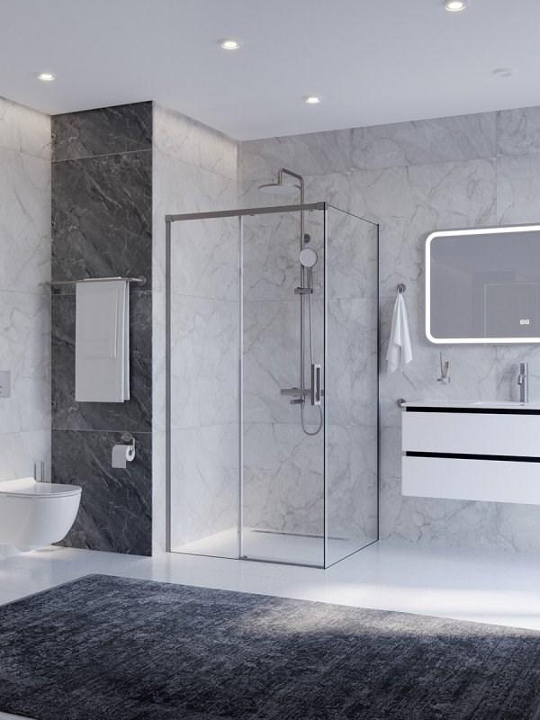 CEZARES Plane Душевой уголок прямоугольный двери раздвижные размер 140x80 см, профиль - сатин / стекло - прозрачное