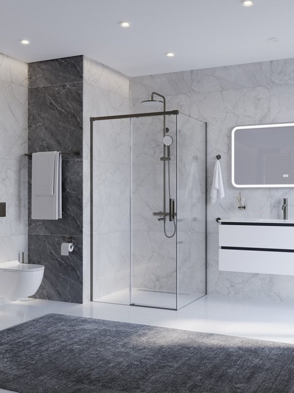 CEZARES Plane Душевой уголок прямоугольный двери раздвижные размер 160x90 см, профиль - оружейная сталь / стекло - прозрачное