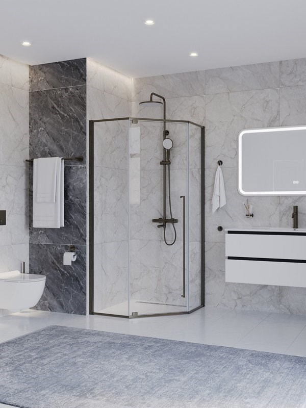 CEZARES Plane Душевой уголок пятиугольный двери распашные размер 90x90 см, профиль - оружейная сталь / стекло - прозрачное