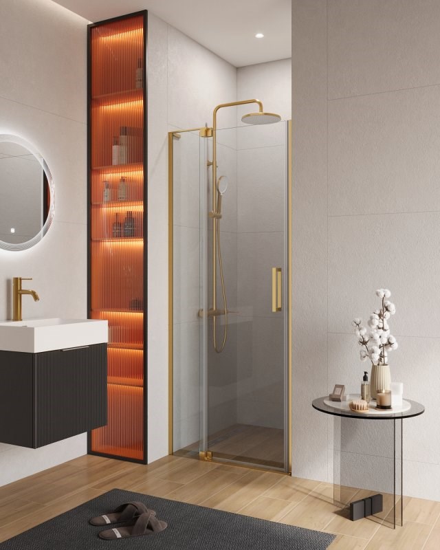 CEZARES Slider Душевая дверь в нишу распашная ширина 70 см профиль - брашированное золото / стекло - прозрачное