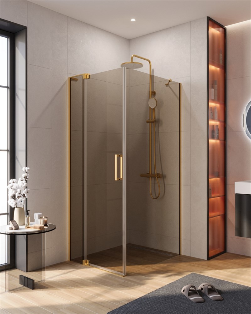 CEZARES Slider Душевой уголок прямоугольный размер 90x80 см, профиль - брашированное золото / стекло - бронза, двери Распашная