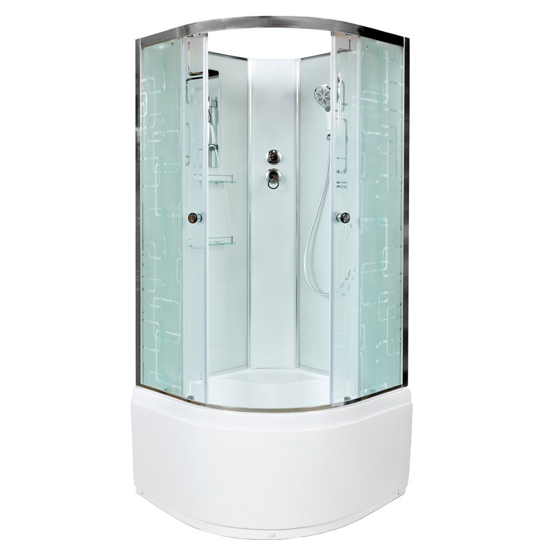 DETO Душевая кабина EM4590N без крыши, размер 90x90 см, профиль глянцевый хром, стекло с узором