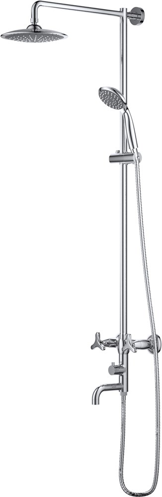 Функциональная душевая система с широкой лейкой, с эффектом настоящего тропического ливня. Штанга регулируется под любой рост. Обновленные ручки.