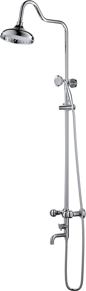 Функциональная душевая система с широкой лейкой, с эффектом настоящего тропического ливня. Штанга регулируется под любой рост. Обновленные ручки.