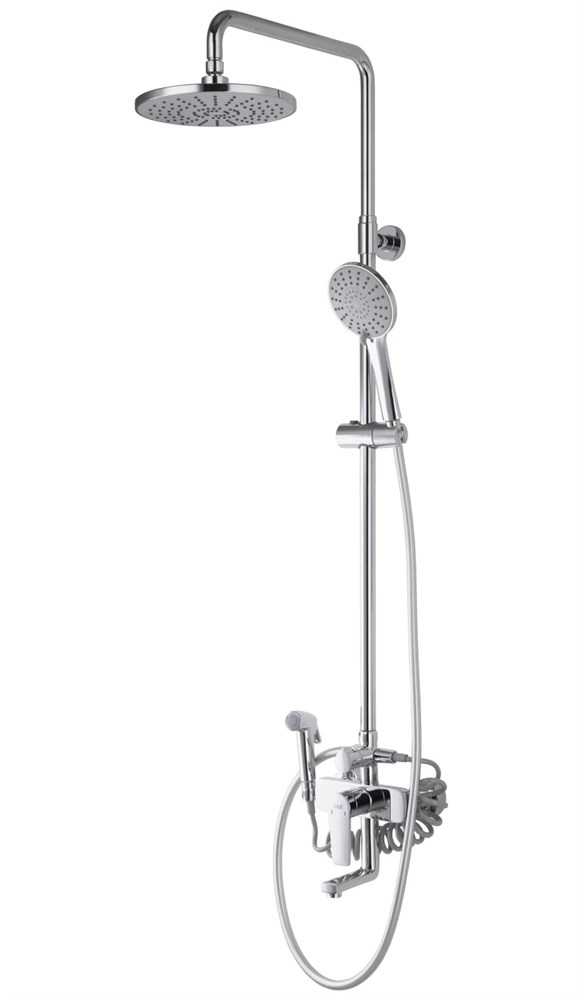 ОснащениеСмеситель, эксцентрики-2шт, декоративная шайба (отражатель)-2шт, штанга, крепление для штанги, кронштейн для верхнего душа, шланг душевой, лейка душевая, держатель душевой лейки, гигиенический душ, паспорт