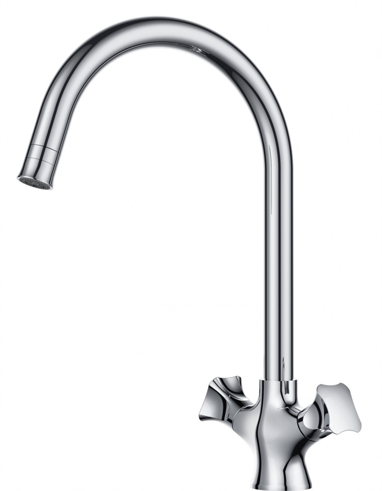 Блестящий внешний вид двухручкового смесителя привлекает своим внешним видом, послужит прекрасным дополнением классической кухни.