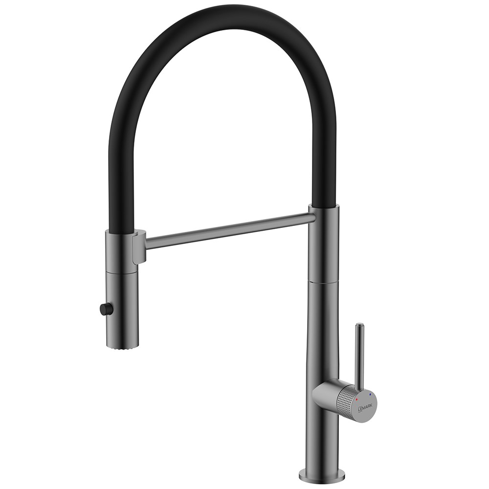 LEMARK Смеситель Beluga LMF-8074B-GM для кухни с гибким изливом, графит