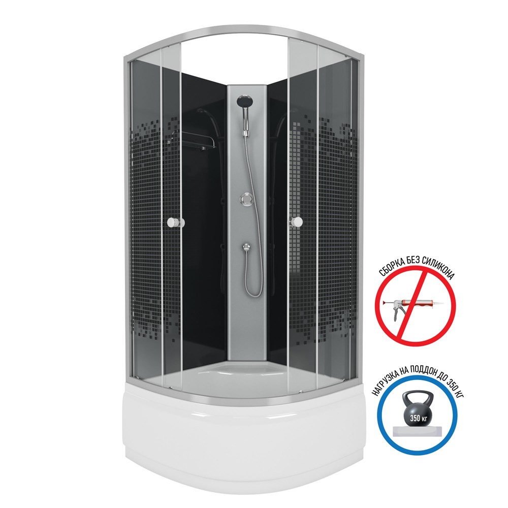 NIAGARA Eco Душевая кабина 1/4 круга, размер 90х90 см, профиль - серебро / стекло - рисунок, двери раздвижные, поддон 40 см, стекло 4 мм