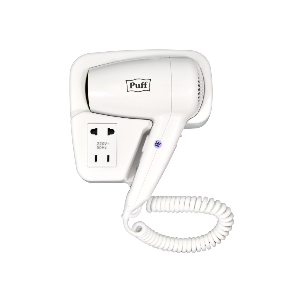 PUFF Фен для волос настенный "Puff-1200B", белый, 1,2 кВт, с доп. розеткой