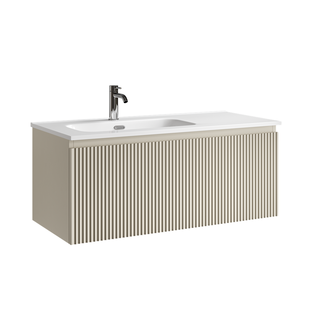Тумба подвесная SANCOS Snob R 1.0 995х445х406, c одним ящиком оснащенным доводчиками скрытого монтажа с системой Soft close (плавного закрывания), Beige Soft , арт.SNR1.0100LCE