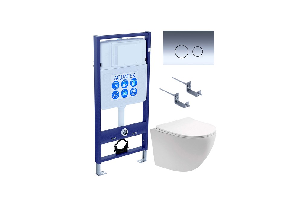 SET AQUATEK ЕВРОПА-018 4в1 (рама AQUATEK Standard INS-0000012 с клавишей KDI-0000018 и крепежом KKI-0000002+унитаз AQ1901-00 с тонким сиденьем sc)