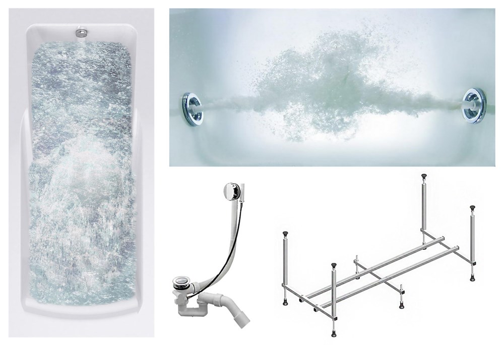 TIMO Комплект Акриловая ванна HELLA1575 150*75*63+Каркас + Слив-перелив+Гидромассаж 6 форсунок