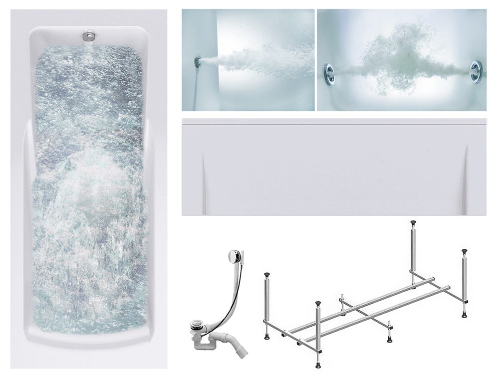 TIMO Комплект Акриловая ванна HELLA1575 150*75*63+Каркас + Слив-перелив+Гидромассаж 6 форсунок+Гидромассаж спины 3 форсунки+Фронтальная панель