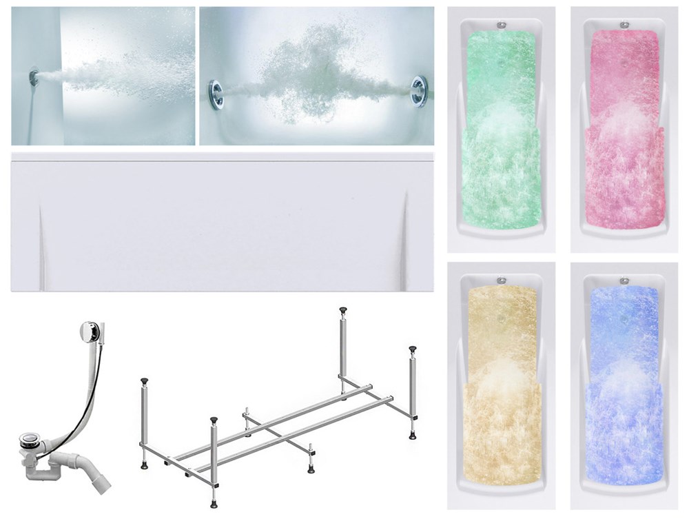 TIMO Комплект Акриловая ванна HELLA1575 150*75*63+Каркас + Слив-перелив+Гидромассаж 6 форсунок+Гидромассаж спины 3 форсунки+Хромотерапия+Фронтальная панель