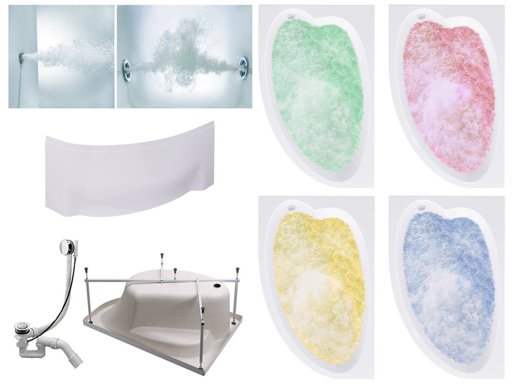 TIMO Комплект Акриловая ванна IVA1595L 150*95*70+Каркас + Слив-перелив+Гидромассаж 6 форсунок+Гидромассаж спины 3 форсунки+Хромотерапия+Фронтальная панель