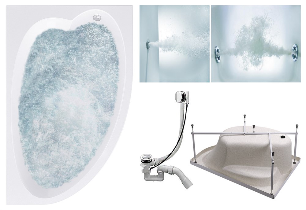 TIMO Комплект Акриловая ванна IVA1610R 160*100*70+Каркас + Слив-перелив+Гидромассаж 6 форсунок+Гидромассаж спины 3 форсунки
