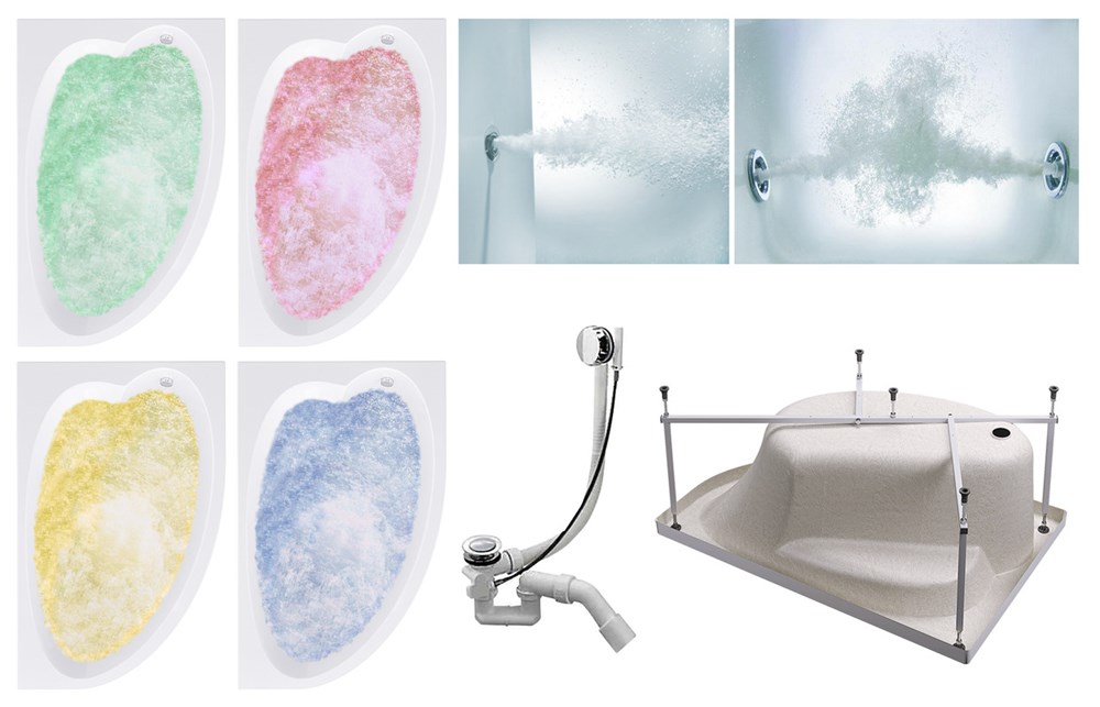 TIMO Комплект Акриловая ванна IVA1610R 160*100*70+Каркас + Слив-перелив+Гидромассаж 6 форсунок+Гидромассаж спины 3 форсунки+Хромотерапия