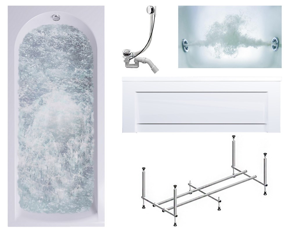 TIMO Комплект Акриловая ванна MIKA1770 170*70*58+Каркас + Слив-перелив+Гидромассаж 6 форсунок+Фронтальная панель
