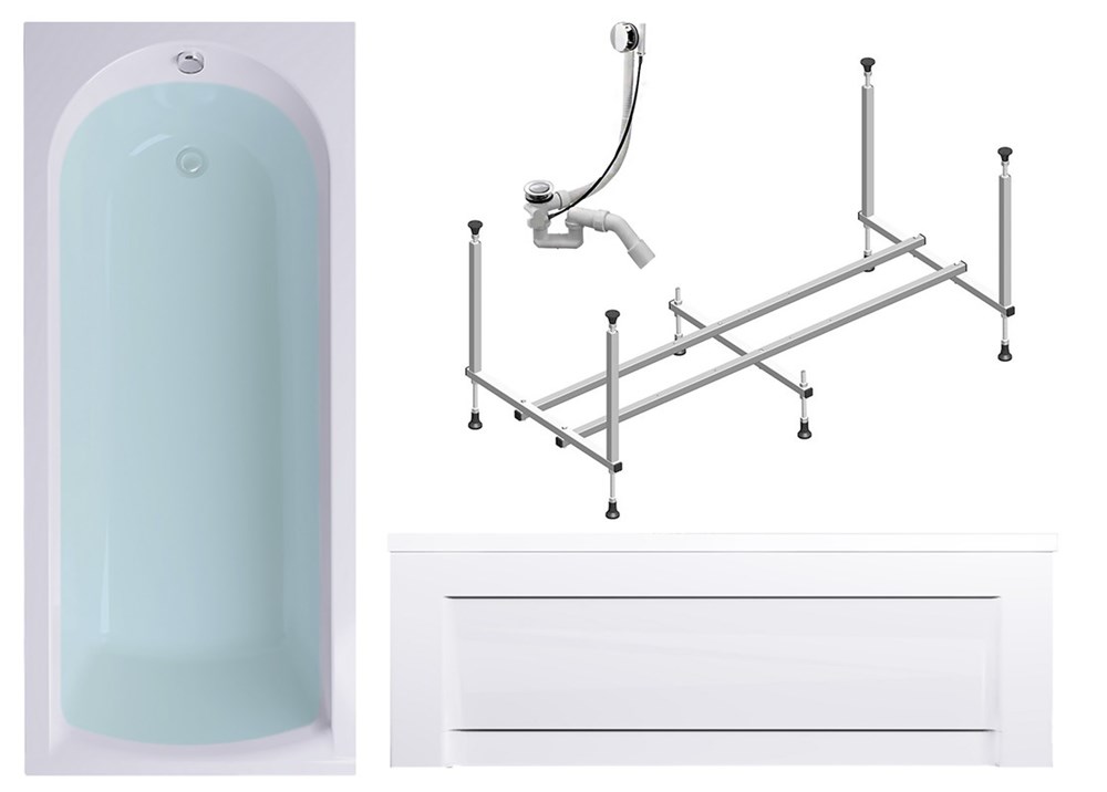 TIMO Комплект Акриловая ванна MIKA1870 180*70*58+Каркас+Слив-перелив+фронтальная панель