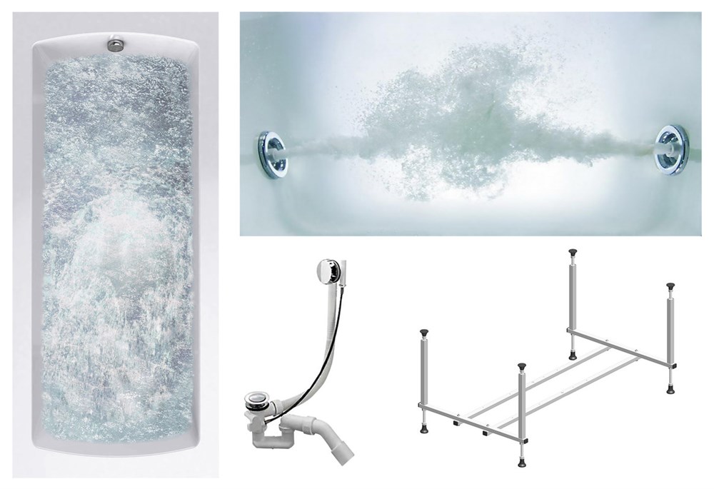TIMO Комплект Акриловая ванна RITTA1775 170*75*63+Каркас + Слив-перелив+Гидромассаж 6 форсунок