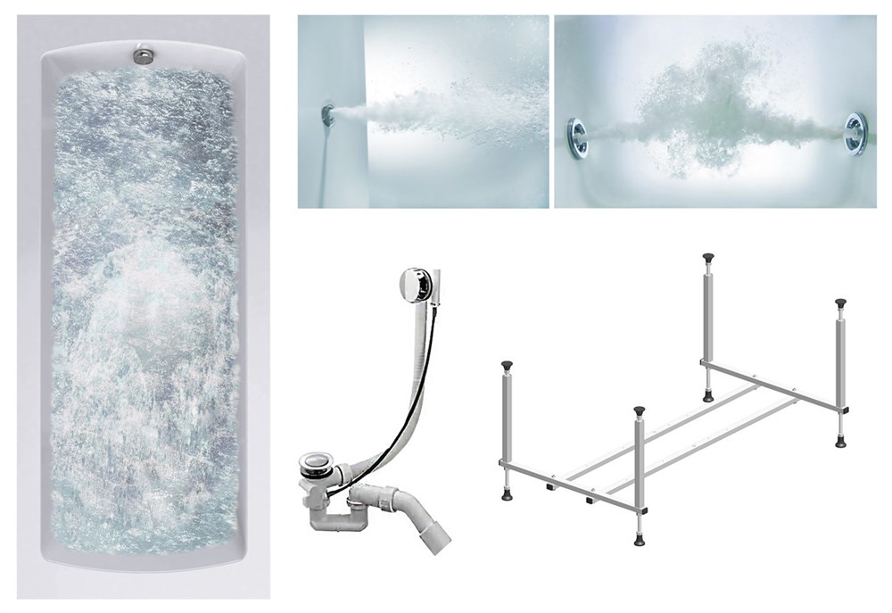 TIMO Комплект Акриловая ванна RITTA1880 180*80*63+Каркас + Слив-перелив+Гидромассаж 6 форсунок+Гидромассаж спины 3 форсунки