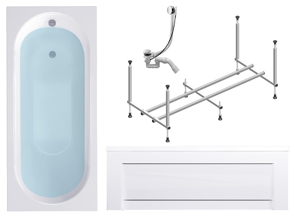 TIMO Комплект Акриловая ванна ROHA1770 170*70*580+каркас+слив-перелив+фронтальная панель