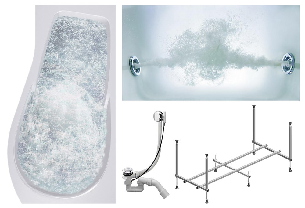 TIMO Комплект Акриловая ванна VINO1590R 150*90*66+Каркас + Слив-перелив+Гидромассаж 6 форсунок