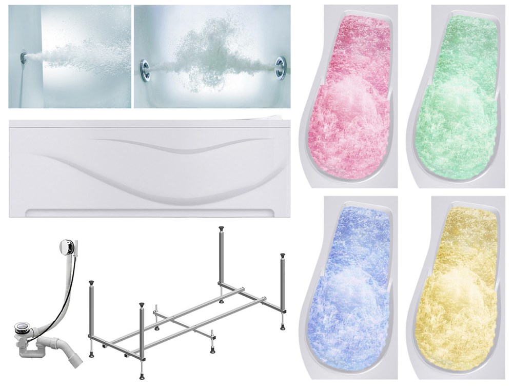 TIMO Комплект Акриловая ванна VINO1590R 150*90*66+Каркас + Слив-перелив+Гидромассаж 6 форсунок+Гидромассаж спины 3 форсунки+Хромотерапия+Фронтальная панель