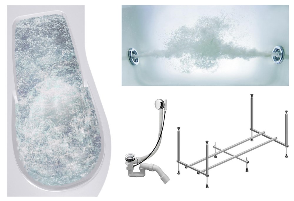 TIMO Комплект Акриловая ванна VINO1792L 170*92*66+Каркас + Слив-перелив+Гидромассаж 6 форсунок