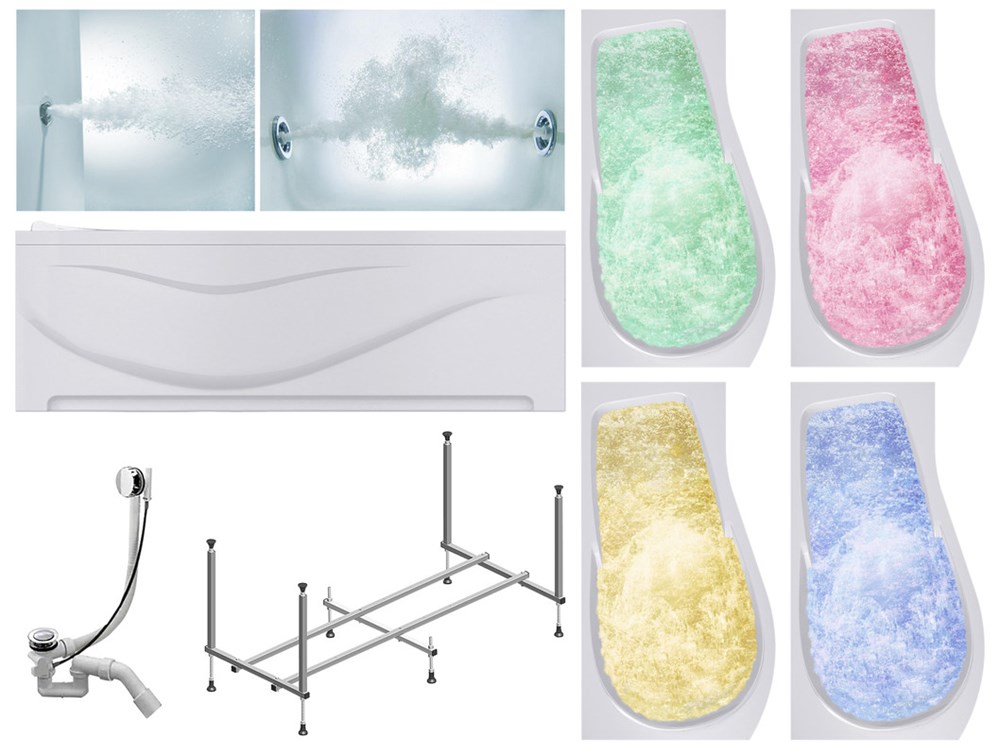 TIMO Комплект Акриловая ванна VINO1792L 170*92*66+Каркас + Слив-перелив+Гидромассаж 6 форсунок+Гидромассаж спины 3 форсунки+Хромотерапия+Фронтальная панель