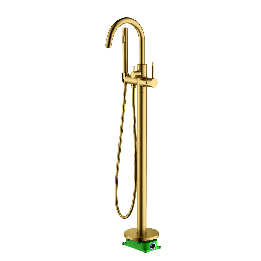 TIMO Смеситель напольный для ванны с душем Saona золото шлифованное (2310/20Y-CR)