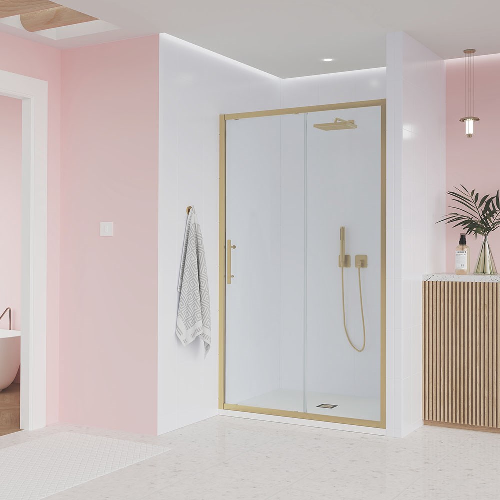 VECONI Душевая дверь Evo 100 G, 1700x1950, золото брашинг, стекло прозрачное