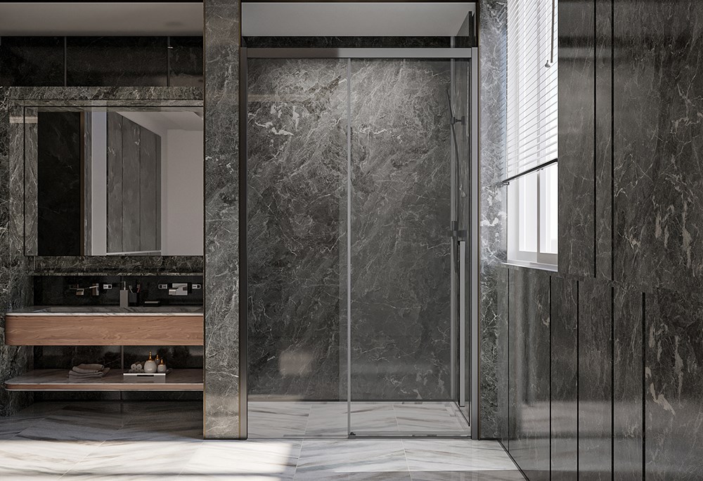 VECONI Душевая дверь Premium Trento PTD-30GR, 1200х2000, брашированный графит, стекло прозрачное