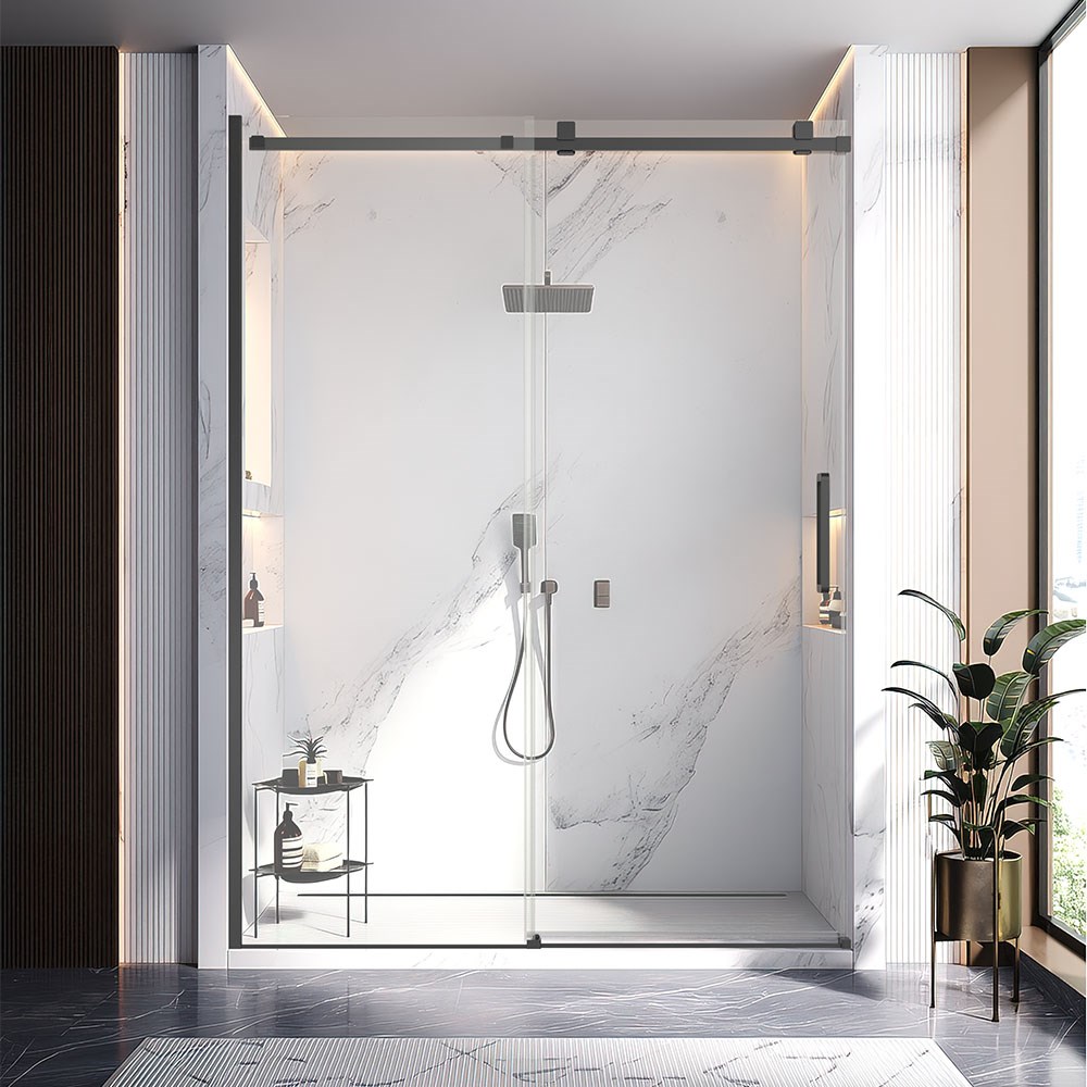VECONI Душевая дверь раздвижная Vianno VN-75B, 1800x2000, черный матовый, стекло прозрачное